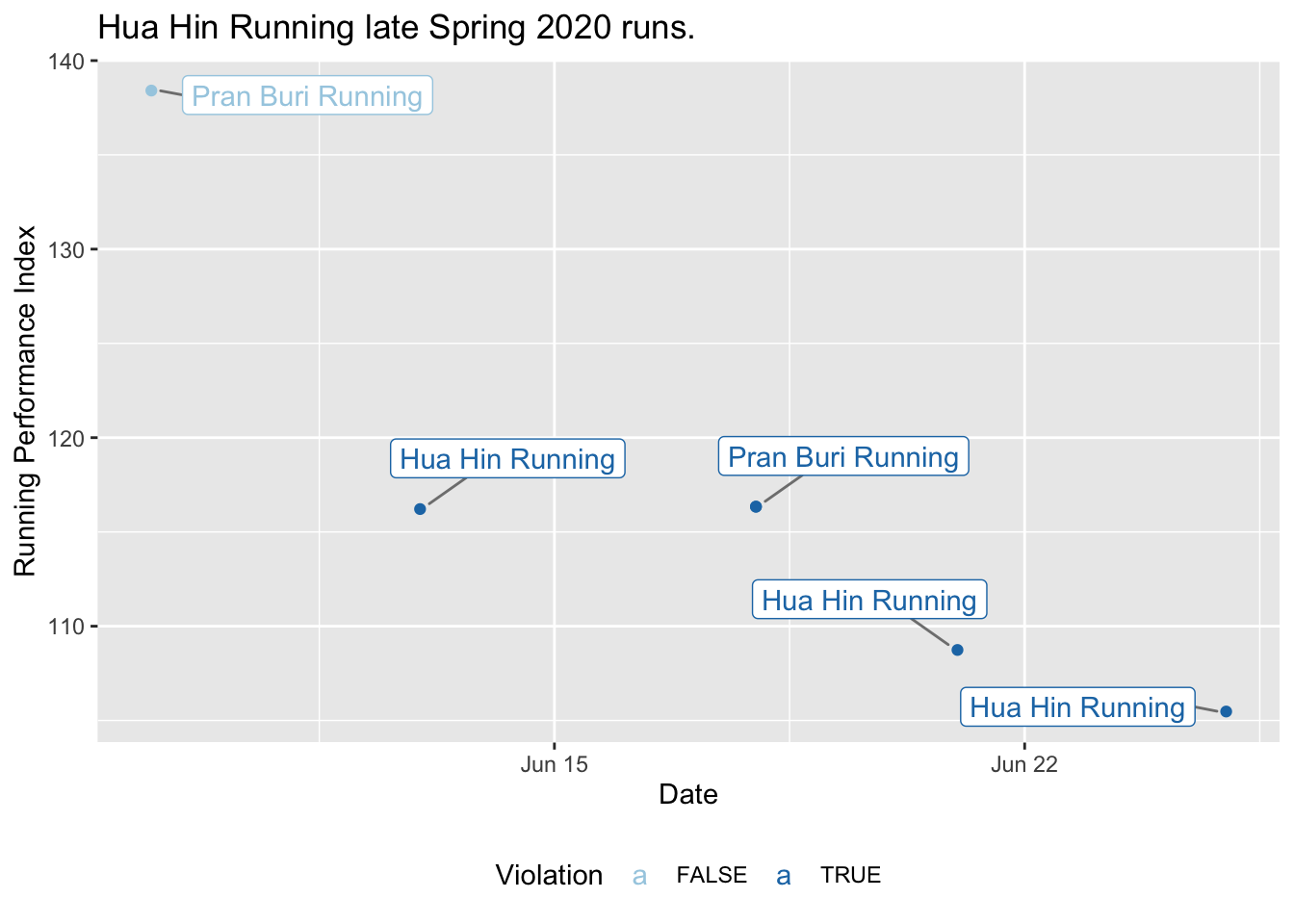 plotViolation(dataHuaHin, titleText = "Hua Hin Running late Spring 2020 runs.")